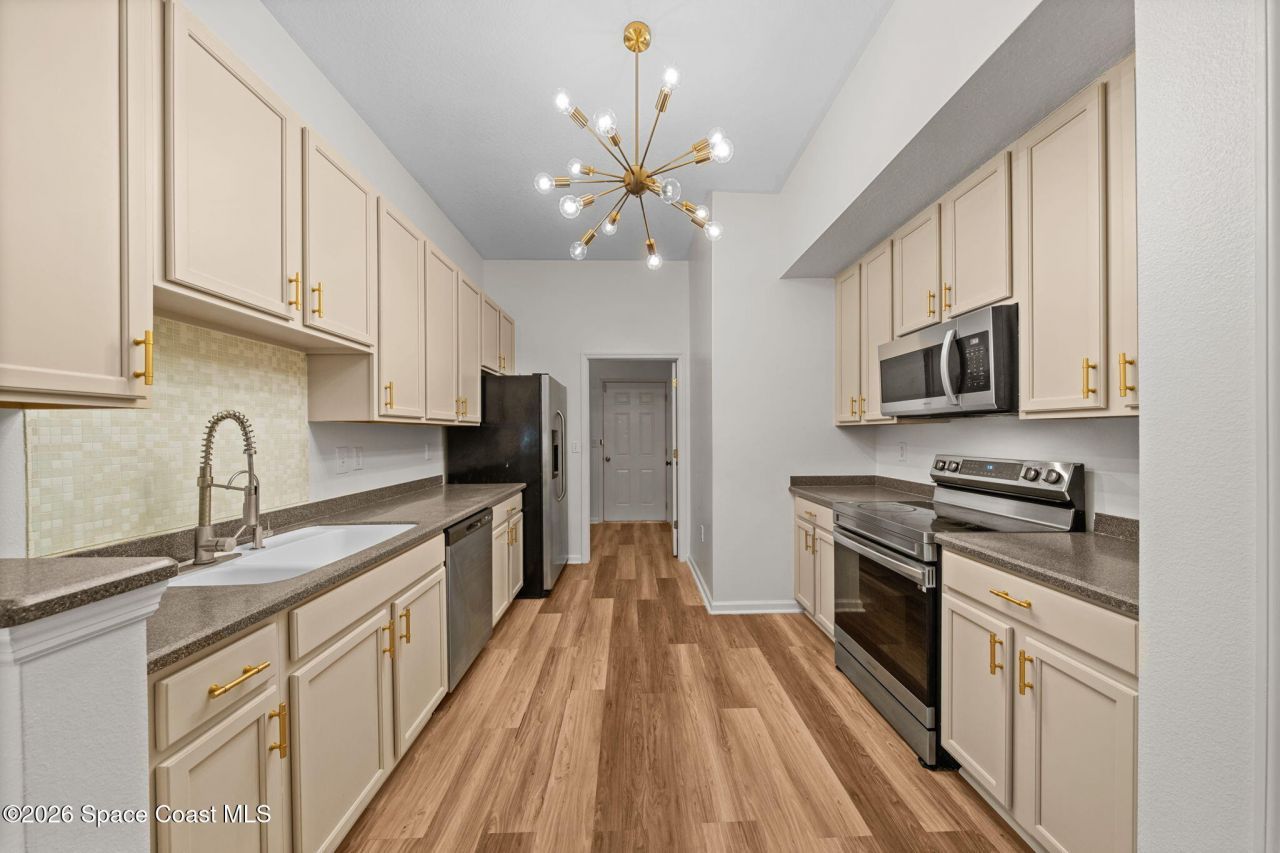 Updated first floor 3-bedroom condo with a 1-car garage in the gated Jameson Place community, just next to Viera. This move-in ready home offers low-maintenance living with tall ceilings, abundant natural light, and an open living and dining area.The kitchen has been updated with modern finishes, ample cabinetry, and a practical layout that opens to the main living area. The primary suite features a private bathroom and walk-in closet, while the two additional bedrooms offer flexible space for guests, family, or a home office and share a conveniently located guest bath. The unit also includes a spacious indoor laundry room.Enjoy easy living with lawn care handled by the association and access to a beautifully maintained heated community pool that can be enjoyed year-round.Ideally located near I-95 and US-1 for easy commuting, under 20 minutes to the beaches, minutes to the Brevard Zoo, and close to the shopping, dining, and entertainment of Viera, and near highly rated schools. highly rated schools nearby.