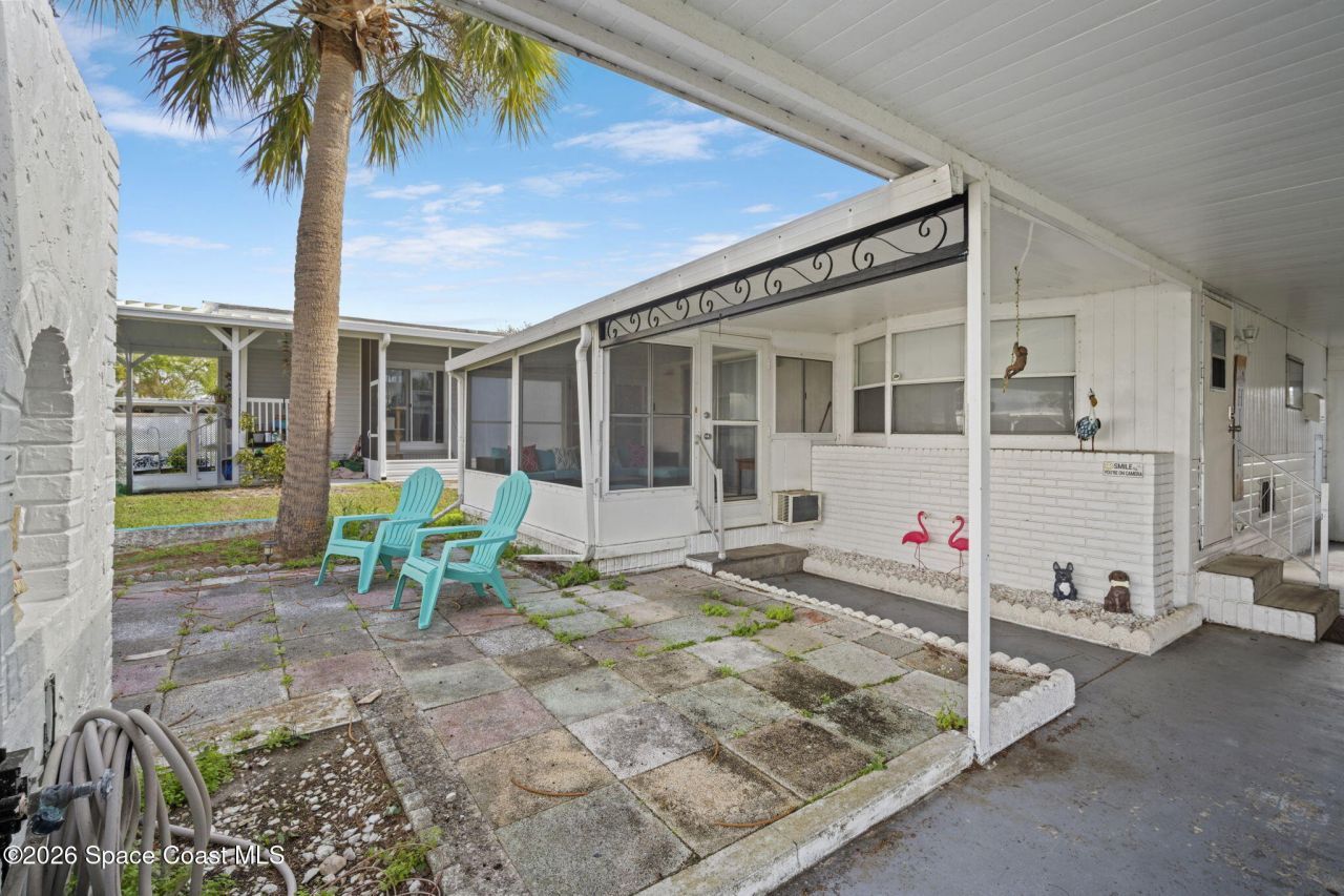 Charming 2-bedroom, 1.5-bath bungalow-style home in Barefoot Bay offering comfort and convenience in a vibrant community. This well-maintained property features updated interiors, newer appliances, and a new washer and dryer, making it move-in ready. The functional layout provides comfortable living spaces with great natural light throughout. Enjoy additional living space in the enclosed patio room, perfect for relaxing, entertaining, or enjoying Floridas beautiful weather year-round. Patio furniture is included, making it easy to settle right in.Step outside to a nicely landscaped yard, and explore the community with the included golf cart. Located close to the clubhouse and many of Barefoot Bays popular amenities, including pools, golf, recreation, and social activities. A great opportunity for a full-time residence, seasonal retreat, or investment property in a highly sought-after community.